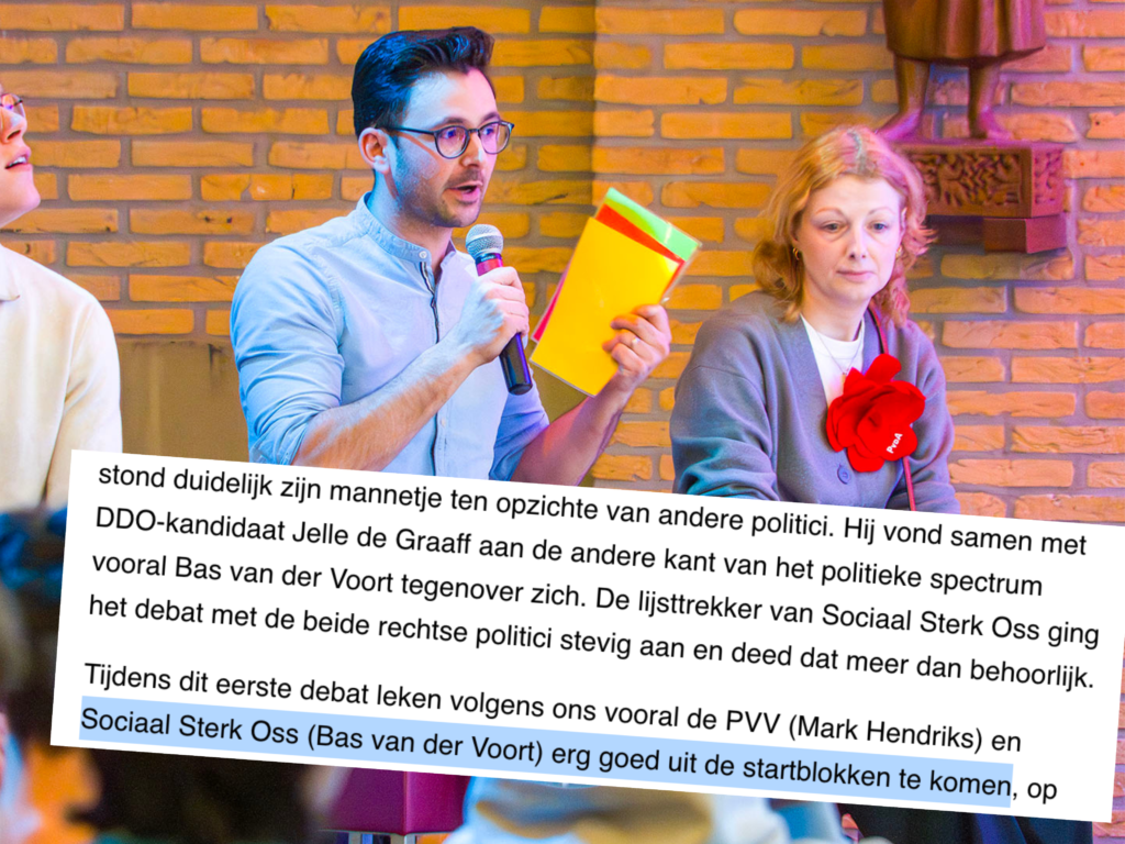 Waar het debat in de finale feller werd, bleef Sociaal Sterk Oss bij de inhoud. Duidelijk, sociaal en standvastig. Ook media zagen dat terug. Zowel Brabants Dagblad als Ons Oss spraken over een sterk optreden van onze lijsttrekker. Lees hun verslagen via: